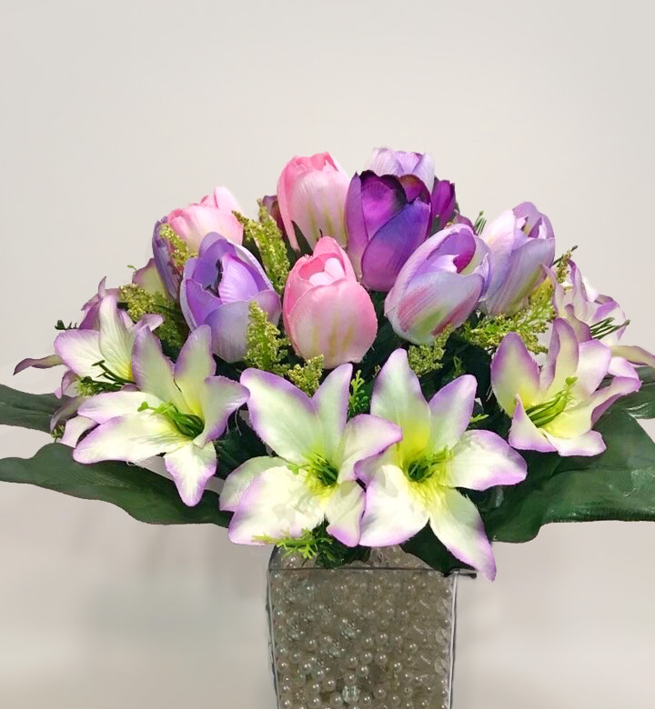 Тюльпани та лілії, букет 24 гілочки