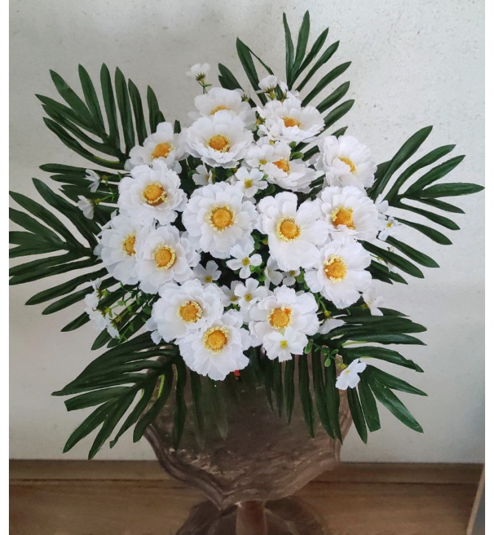 Ромашки у пальмовому листі букет 12 гілочок